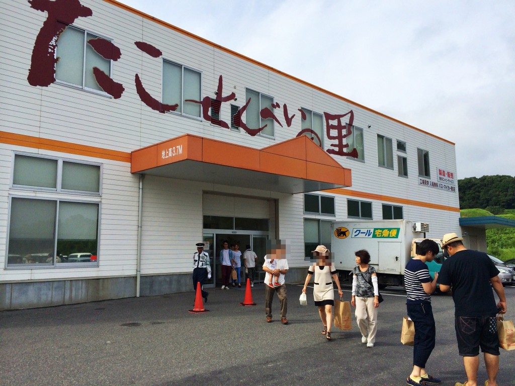 「たこせんべいの里」は今まさに巷を賑わしている道の駅で、お盆ということもあって他府県やら「わ」ナンバーやらと車がズラリと駐車場に並んでいて活気を物語ります。