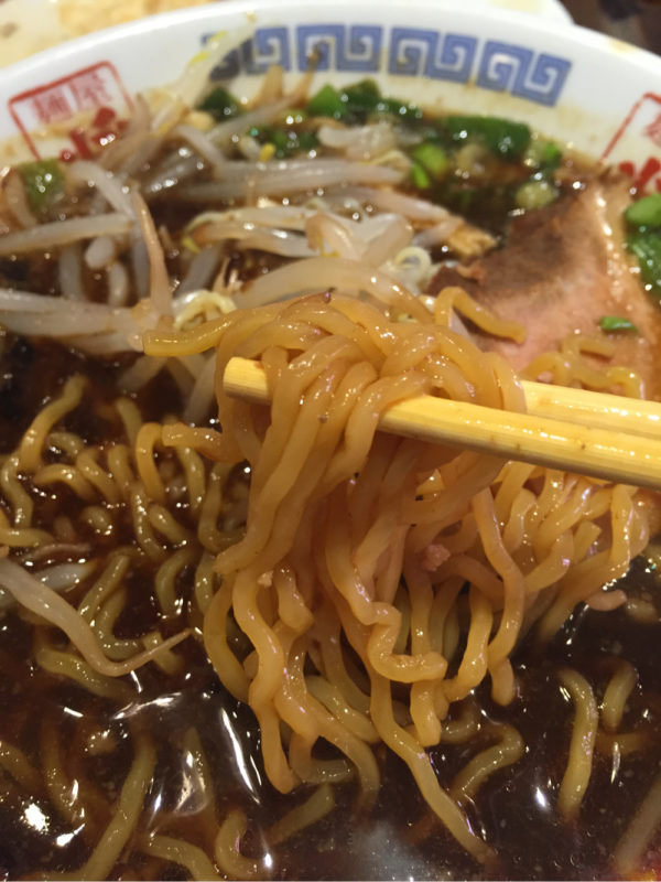 麺にもスープが馴染んでいてこの色!京都・新福菜館や、東大阪・高井田系ラーメンを彷彿とさせる出で立ちですね。